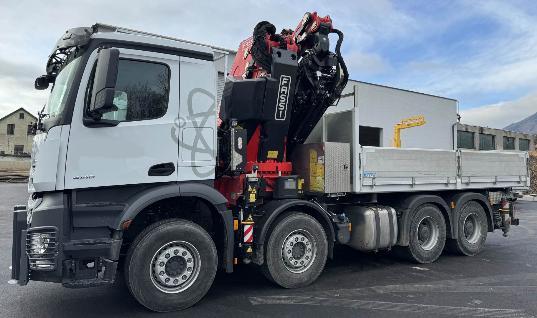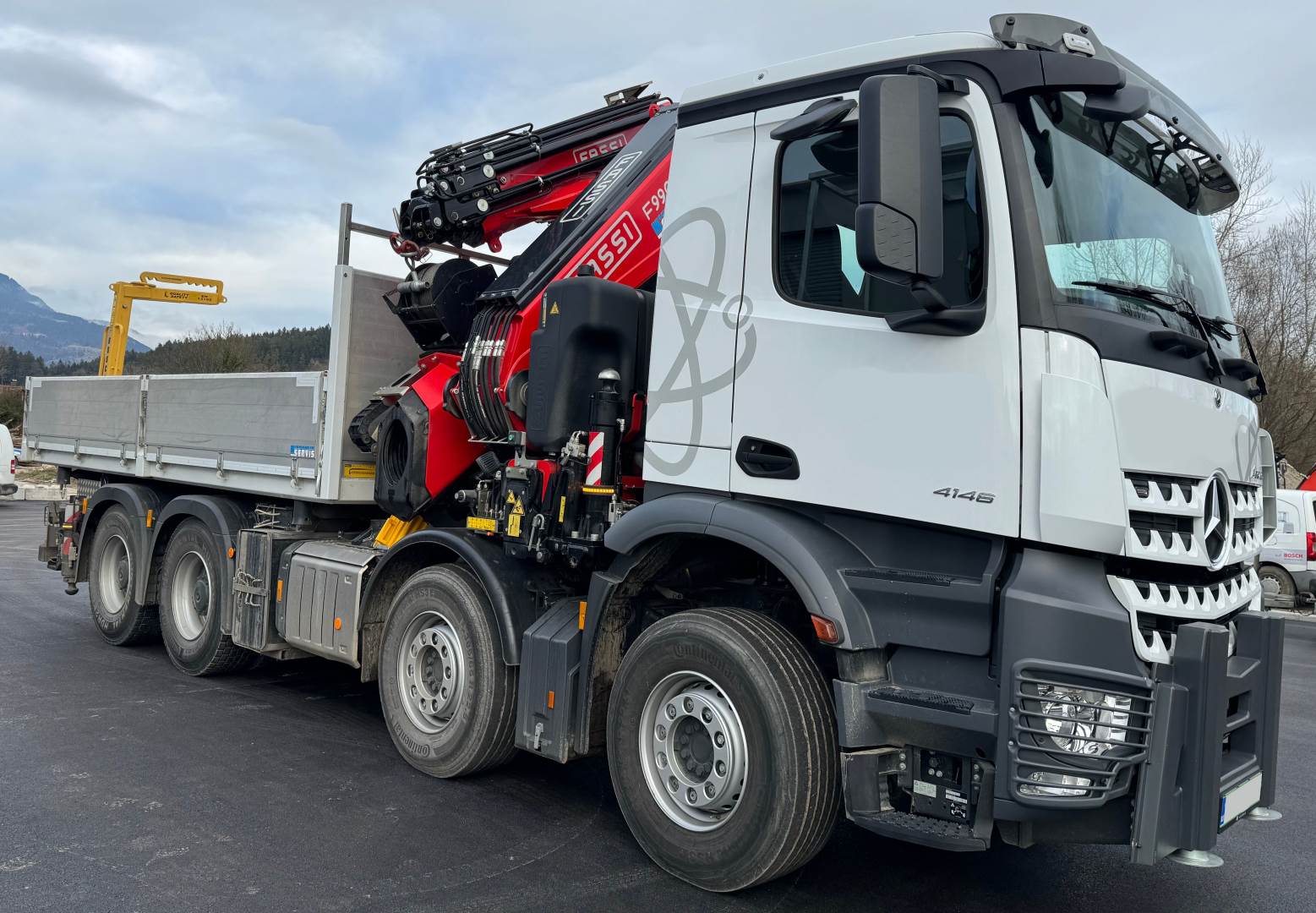 MB 4146 8x4 BJ 2023,11000km,3s-kipper 5100 mm, Fassi F990-8 JIB-6, 230 bs , seilwinde , frontabstützung , Lieferbar 04/2024 , 410.000.- €
